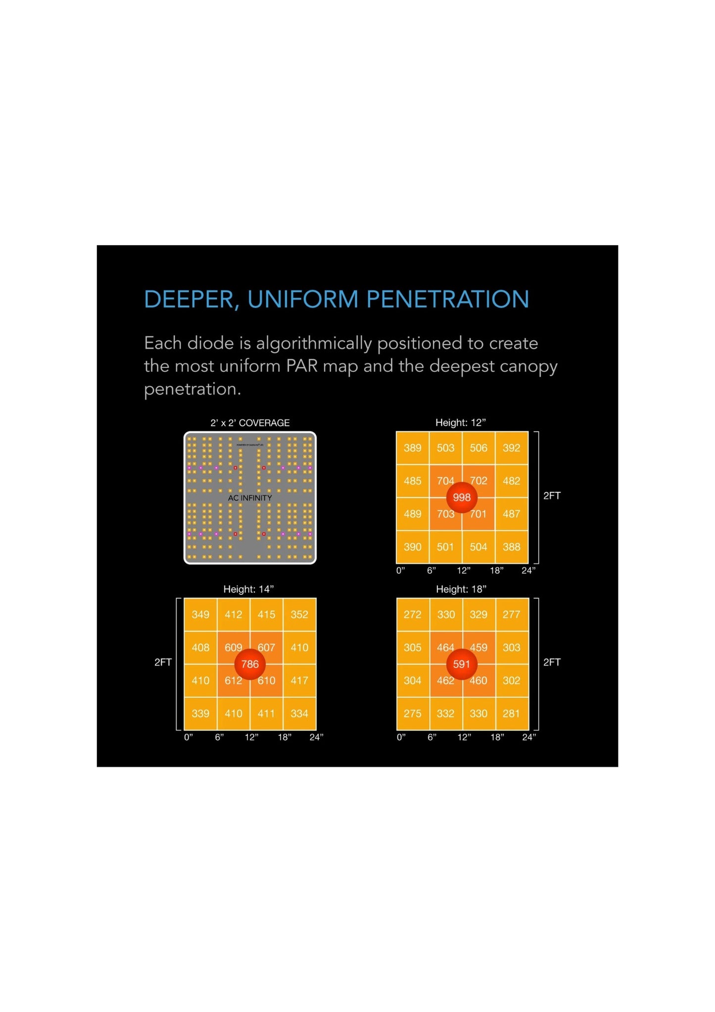 The AC Infinity Ionboard S22 100W Full Spectrum LED Grow Light is engineered for optimal plant growth across all stages. Featuring Samsung LM301B diodes, it delivers a balanced spectrum of 3000K, 6500K, 660nm, and 730nm wavelengths, ensuring efficient photosynthesis and robust plant development. The light covers a 2x2 ft area, providing uniform light distribution with a PPF of 998 µmol/s and an efficacy of 2.7 µmol/J. Its fanless, unibody aluminum design promotes heat dissipation, enhancing diode longevity. The included dimmable driver allows for 0–100% brightness adjustment, and the system supports daisy chaining and integration with AC Infinity's smart controllers for automated grow cycles and scheduling.
