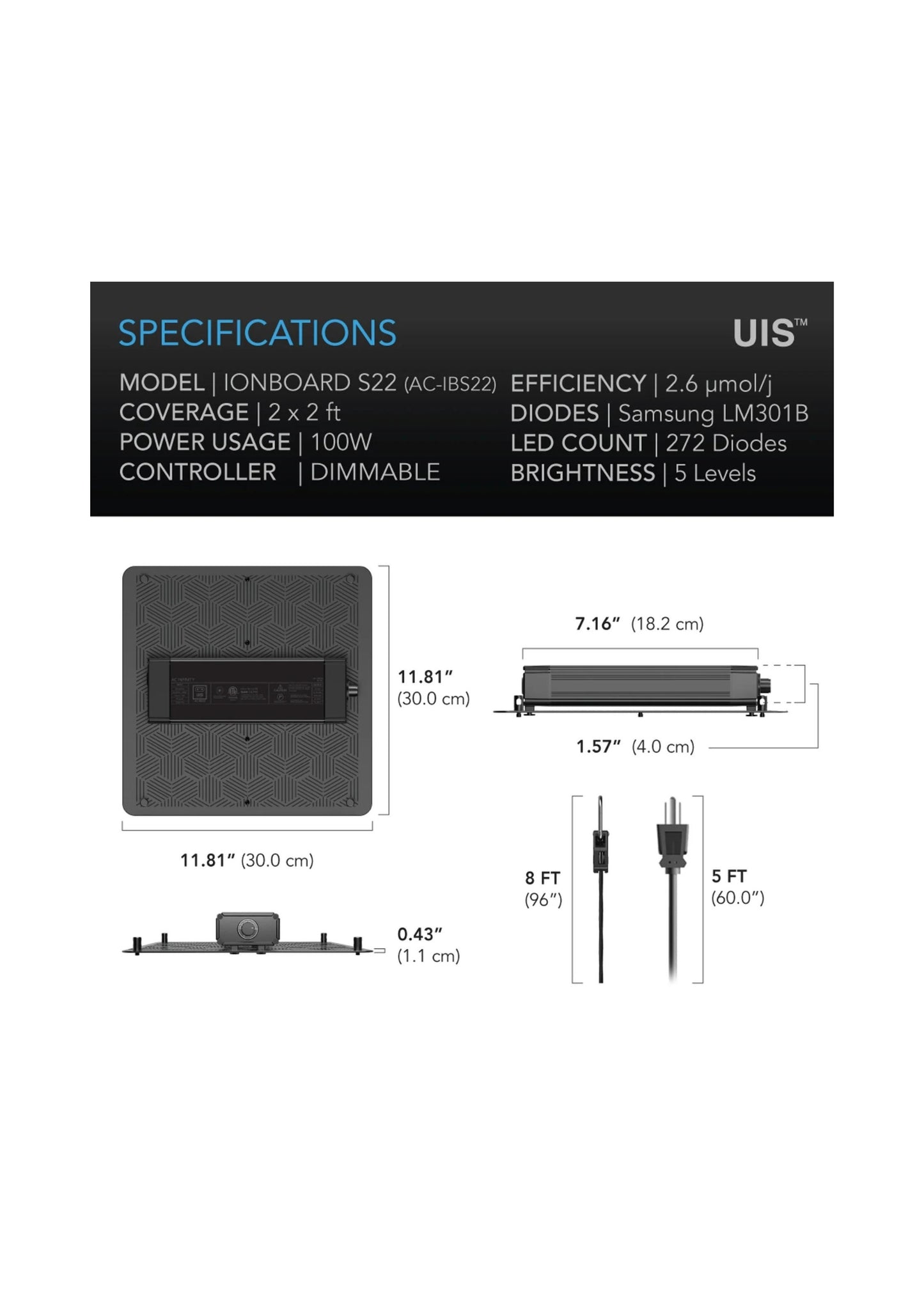 AC Infinity Ionboard S22 Full Spectrum LED Grow Light 100w