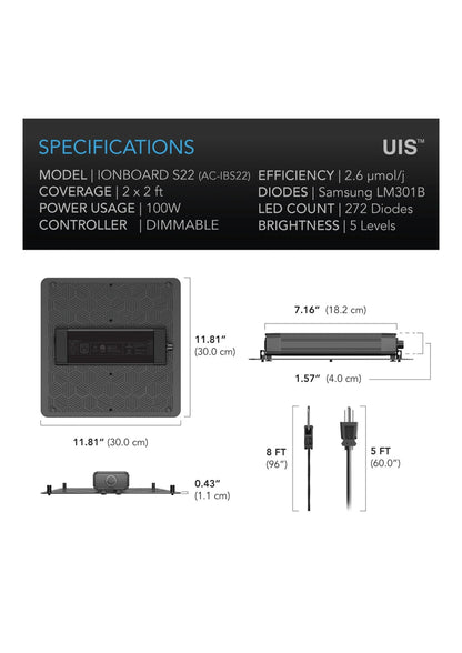 Ionboard S22 Vollspektrum-Wachstumslicht 100 W, 60 cm x 60 cm