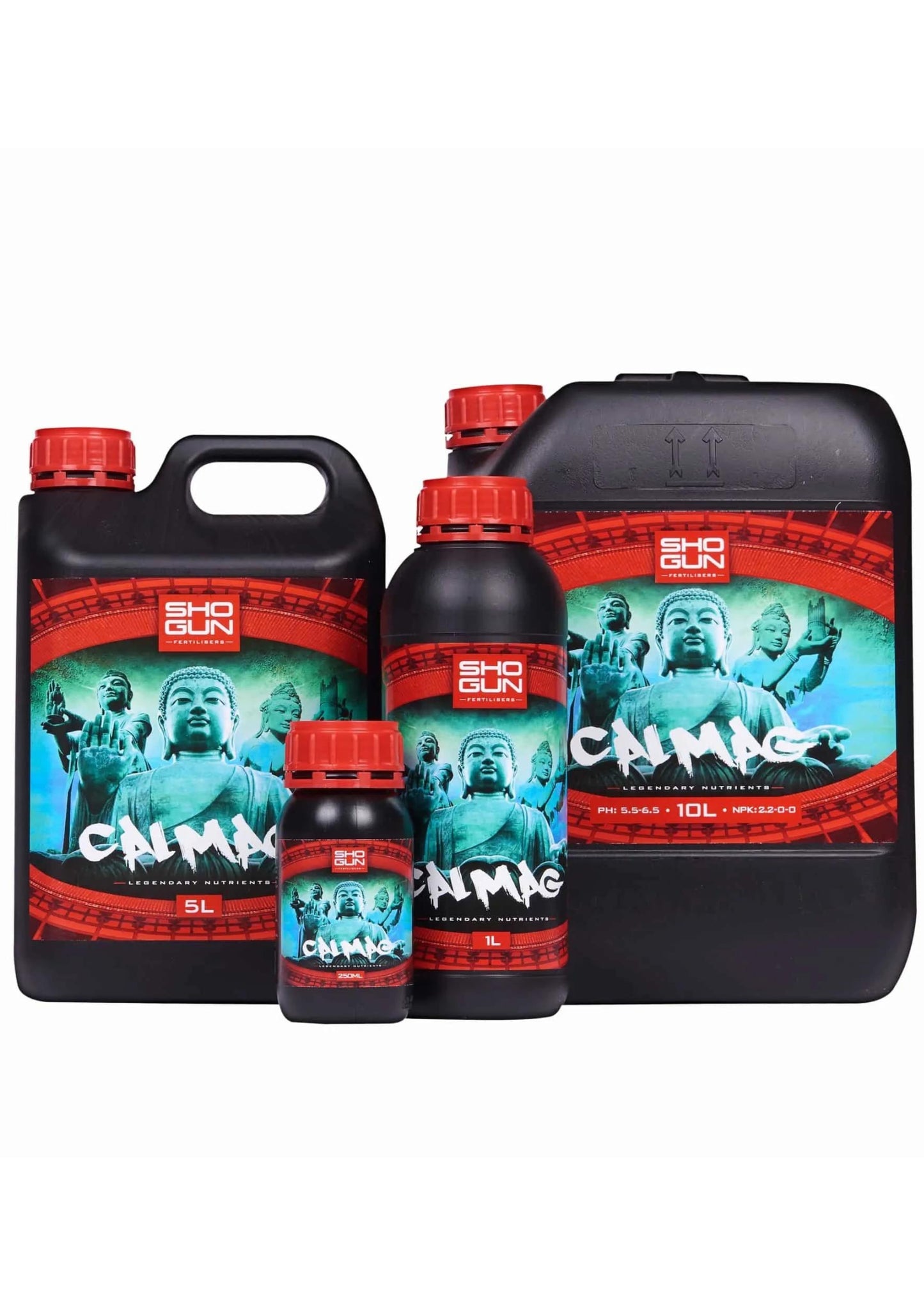 SHOGUN Calmag ist eine oft übersehene Ergänzung zu jeder Fütterungsroutine, die enorme Verbesserungen bewirken kann. SHOGUN Calmag verbessert die Nährstoffaufnahme und -verlagerung in der Pflanze und verbessert die Fähigkeit Ihrer Pflanze, sich zu bewegen und andere essentielle Nährstoffelemente zu nutzen, erheblich. Außerdem trägt es dazu bei, viele wichtige Pflanzenfunktionen zu erleichtern.