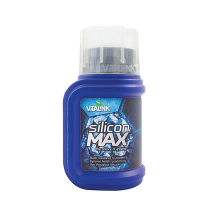 Silicon MAX ist ein hochkonzentriertes Siliziumadditiv, das stark alkalisch ist. Sie sollten es zuerst dem Wasser hinzufügen, mischen und dann Ihre Nährstoffe hinzufügen. Passen Sie den pH-Wert mit VitaLink Essentials pH Down an, bevor Sie Ihre Grundnährstoffe und Zusatzstoffe hinzufügen, da Silicon MAX den pH-Wert erhöht. Empfohlener pH-Bereich 5,8–6,5.