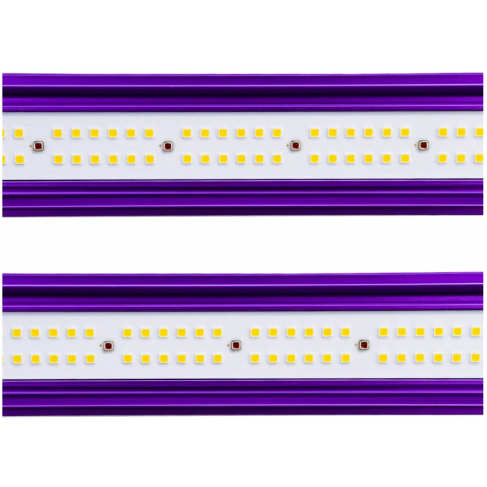 Die Anordnung der LEDs erzeugt eine gleichmäßige Lichtverteilung in kurzer Entfernung zur Pflanze und ermöglicht eine Wachstumsbeleuchtung aus einer einzigen Quelle für mehrschichtige Anbausysteme, einzelne Bänke in niedrigen Räumen und Zuchtzelten.