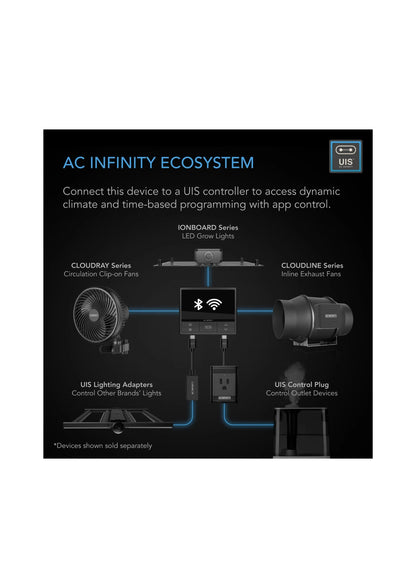 The AC Infinity Cloudforge T7 15L Humidifier is a high-capacity ultrasonic humidifier designed for precision climate control in hydroponic systems, greenhouses, and professional grow rooms. With a 15-litre tank and high mist output, it delivers efficient, quiet humidity regulation to maintain ideal conditions for plant growth and root zone stability. Featuring onboard controls and compatibility with AC Infinity environmental controllers, the Cloudforge T7 ensures your humidity levels stay perfectly aligned with your crop's growth stage. Whether you're propagating seedlings or pushing peak flower performance, balanced humidity enhances transpiration and nutrient delivery. Its large capacity minimizes refill frequency, making it ideal for medium to large grow spaces and automated irrigation setups. Durable, easy to clean, and extremely efficient, it’s the ultimate humidity control solution for serious cultivators. Key Features: 15L ultrasonic humidifier with high mist output Designed for hydroponic systems and grow environments Promotes balanced humidity for optimal root zone health Enhances nutrient delivery and transpiration efficiency Compatible with AC Infinity climate controllers Quiet operation with digital controls and timer functions Ideal for tents, greenhouses, and automated grow setups Works seamlessly with automated irrigation systems