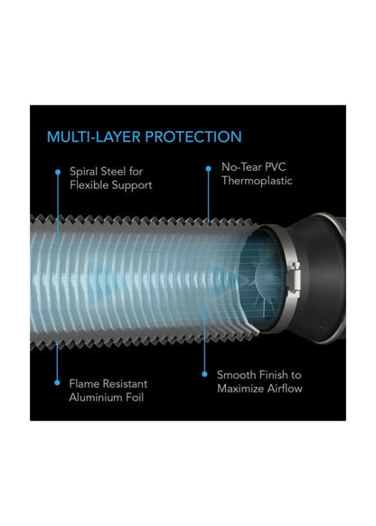 AC Infinity Flexible Four-Layer Ducting is a premium-grade ventilation hose designed to support efficient airflow and environmental control in hydroponic systems and grow rooms. Constructed with four layers—including dual aluminum, PET, and a steel-wire spiral—this ducting offers superior durability, flexibility, and noise reduction. Its insulated multi-layer design resists tearing and helps dampen fan noise and vibration, improving stealth while maintaining optimal temperatures and humidity around the root zone. It’s ideal for connecting inline fans, carbon filters, silencers, and ducting accessories in tents, greenhouses, or commercial setups. The flexible build makes it easy to install in tight corners or custom configurations. Whether you're managing intake, exhaust, or circulation airflow, this ducting ensures stable performance alongside automated irrigation and other grow room tech. Key Features: Four-layer construction: aluminum, PET, and steel-wire support Durable and flexible for easy routing in hydroponic systems Minimizes vibration and noise for quiet grow room operation Supports consistent temperature and airflow control Enhances root zone stability through environmental precision Ideal for intake, exhaust, and fan/filter connections Flame-retardant and tear-resistant design Compatible with all AC Infinity fans and automated irrigation environments