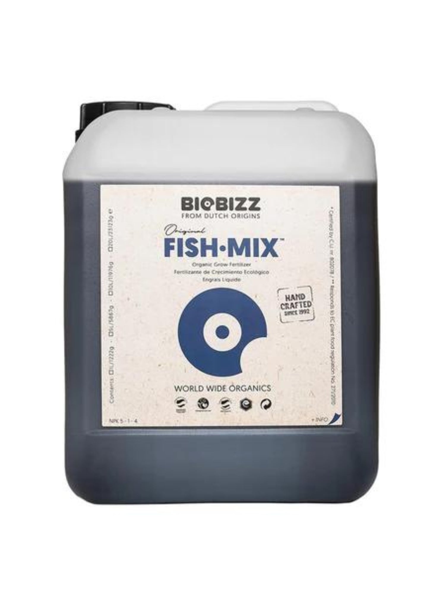 Biobizz Fish Mix is a potent organic soil conditioner and plant nutrient made from emulsified North Sea fish and sugar beet vinasse. Rich in natural nitrogen, trace minerals, and amino acids, it is designed to stimulate soil microbial activity and drive vigorous vegetative growth.