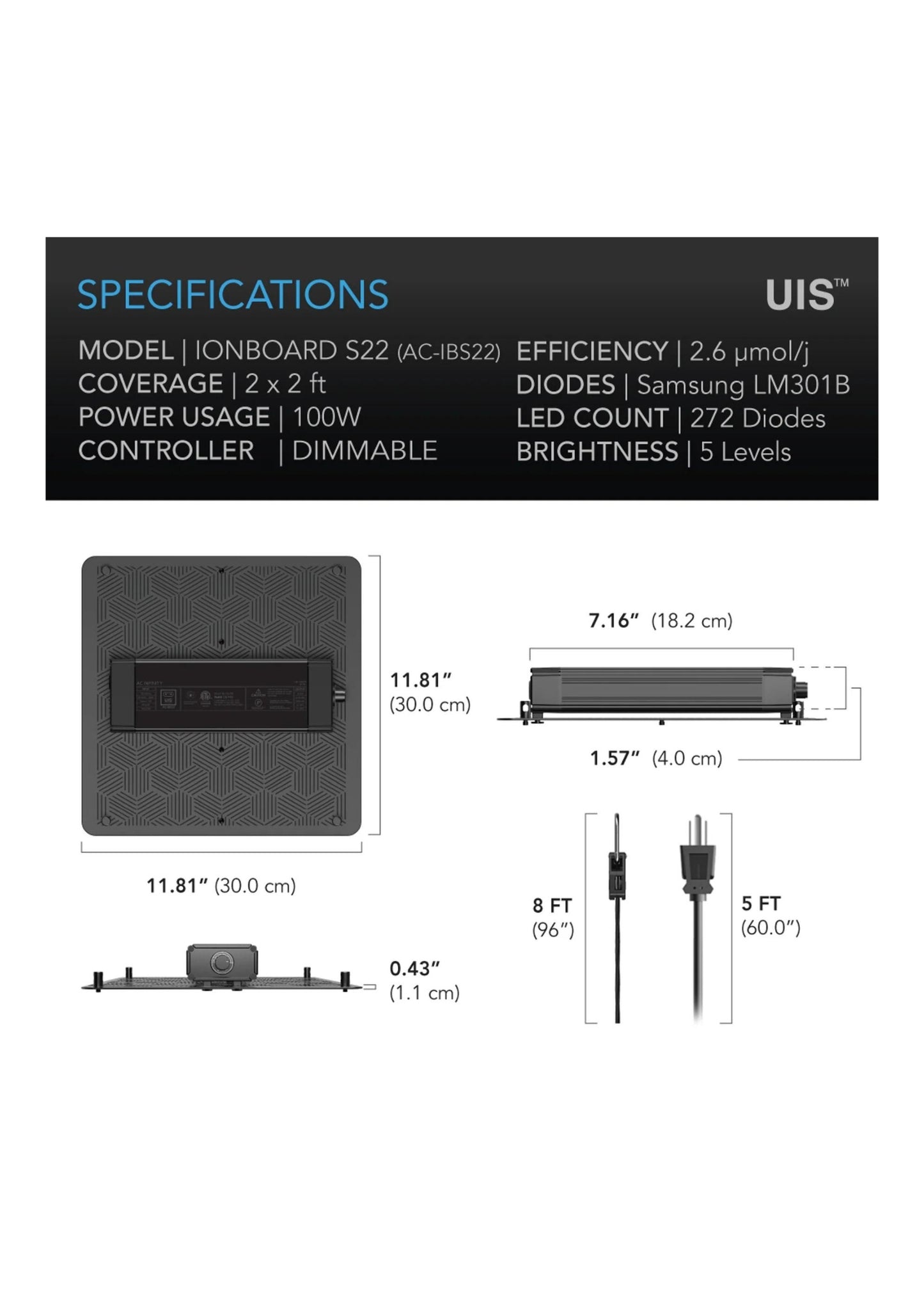 The IONGRID T22 LED Grow Light 150W | Samsung LM301H Diodes is a compact and powerful full-spectrum fixture engineered for professional results in smaller hydroponic systems. Designed to cover a 2x2 ft area, this light supports vigorous growth during seedling, vegetative, and flowering stages, thanks to the inclusion of industry-leading Samsung LM301H diodes. This fixture delivers intense PAR output with low energy consumption, making it ideal for use in tight grow room environments or grow tents. The full spectrum mimics natural sunlight for superior plant development and helps maintain optimal root zone conditions by producing minimal heat. With a silent, passively cooled design, the IONGRID T22 fits perfectly into automated irrigation setups and smart control environments. It's ideal for growers seeking efficiency, crop quality, and maximum return in compact cultivation spaces. Key Features: 150W full-spectrum LED powered by Samsung LM301H diodes Optimal for 2x2 ft coverage in small hydroponic systems Promotes faster growth, flowering, and improved yields Low heat output protects the root zone environment High PAR efficiency for strong nutrient delivery response Silent operation with passive cooling design Integrates with timers and automated irrigation systems Ideal for compact grow room or tent-based setups