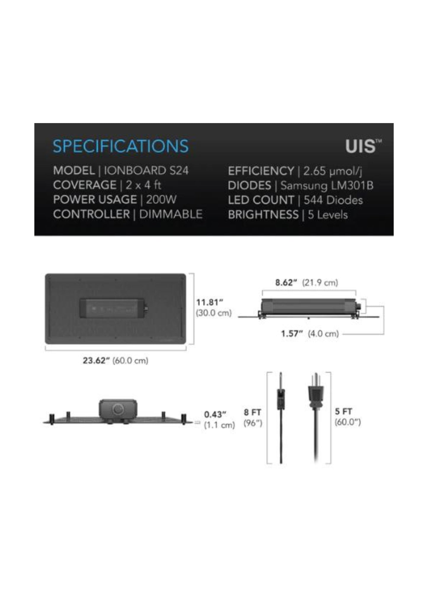 Ionboard S24 Full Spectrum LED Grow Light 200W, 60cm X 120cm