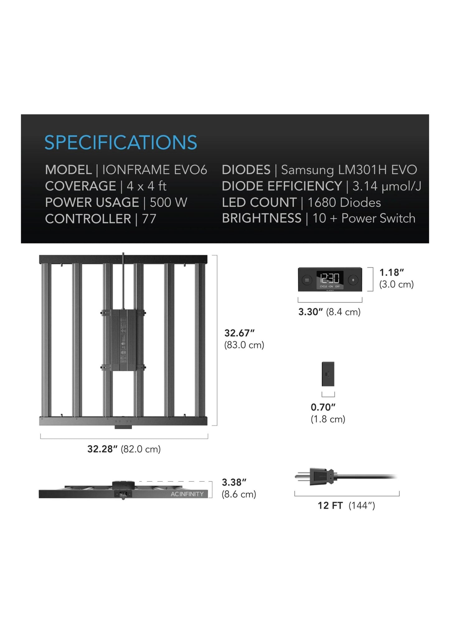 IONFRAME EVO6, Samsung LM301H EVO Commercial LED Grow Light, 500W, 4X4 FT