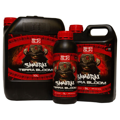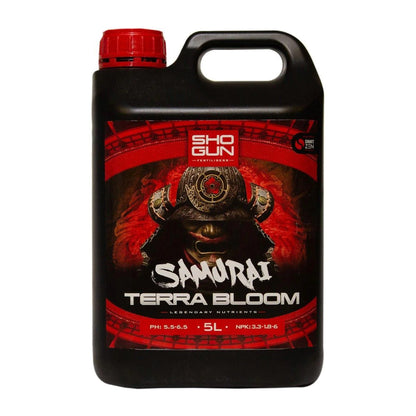 SHOGUN Samurai Terra Bloom is a premium base nutrient formulated specifically for the flowering stage in soil-based growing systems. Designed to work seamlessly with your indoor gardening or hydroponic setup, this nutrient enhances flower size, density, and aroma, giving your plants the essential macro and micronutrients needed for optimal bloom.