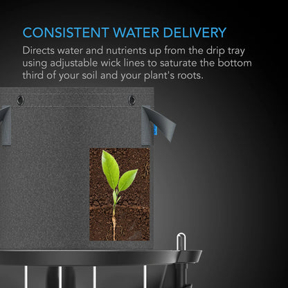 AC Infinity Self-Watering Fabric Pot Base, 4 Pack, is designed to enhance plant growth by ensuring consistent moisture distribution. These bases fit perfectly under fabric pots to allow excess water to drain while preventing root rot. Ideal for use in hydroponic or soil setups, they help maintain the optimal moisture level for your plants. The pack includes four bases, making it a great value for plant enthusiasts who need reliable drainage and water retention solutions.