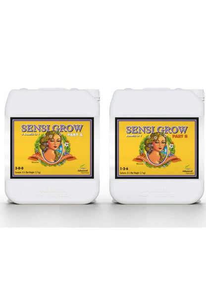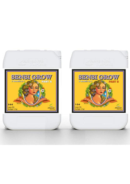 Advanced Nutrients Sensi Grow A+B is a premium two-part base nutrient formula designed for the vegetative stage of plant development. Engineered with Advanced Nutrients’ pH Perfect® Technology, it automatically balances your nutrient solution to the optimal pH range, eliminating the need for manual adjustments and ensuring consistent nutrient uptake.