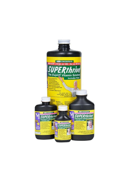 SuperThrive is a legendary vitamin and hormone solution designed to reduce plant stress, improve transplant success, and promote vigorous growth across all stages of cultivation. Trusted by professionals and hobbyists alike, it’s ideal for use in hydroponic systems, soil, coco, and all other grow media. Formulated with a unique blend of vitamins, including B1, and plant hormones, SuperThrive enhances metabolic function, improves nutrient delivery, and strengthens the root zone. It’s perfect for seedlings, transplants, recovering plants, and routine use to encourage vitality and resilience. Compatible with all nutrient regimens, SuperThrive works well in both hand-fed and automated irrigation systems. Key Features: Vitamin-based plant tonic for all stages of growth Enhances root zone development and transplant success Reduces stress from environmental or handling shock Boosts metabolic activity and nutrient delivery Suitable for hydro, soil, coco, and aquaponic systems Compatible with any nutrient line Ideal for propagation, veg, bloom, and recovery stages Works in automated irrigation and hand-watering systems