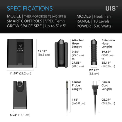 AC Infinity Thermoforge T3 is a state-of-the-art temperature control system designed to maintain optimal conditions in grow rooms. Featuring precise temperature control, the Thermoforge T3 ensures your plants thrive by automatically adjusting the temperature to meet specific needs. It’s an essential tool for growers seeking to maximize plant health and yield, providing enhanced stability in controlled environments.