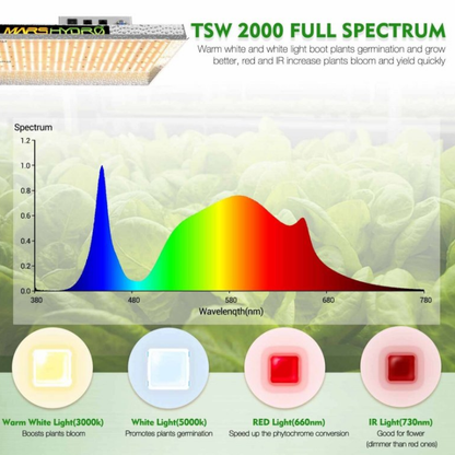 Perfect for indoor growers looking for a quiet, high-efficiency full spectrum LED, the Mars Hydro TSW2000 delivers professional results in a user-friendly, compact format.
